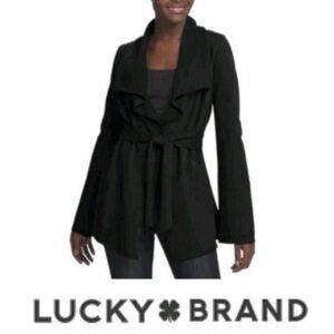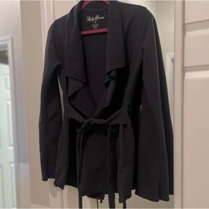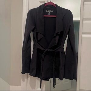 Lucky Brand raw hem open front Terry knit belted cardigan sweatshirt jacket blazer top