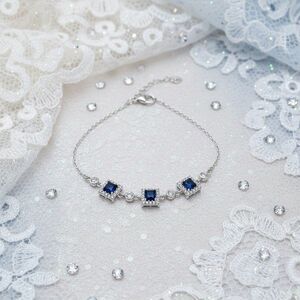 This elegant 925 silver bracelet features deep blue sapphire stones set in a refined square station design with sparkling clear accents between each setting. Measuring approximately 8 inches in length, it offers a classic, timeless look thats perfect for both everyday wear and special occasions.