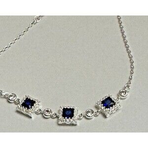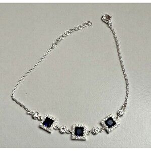 NEW 925 Silver Blue Sapphire Bracelet – Square Station Design, 8 Inches