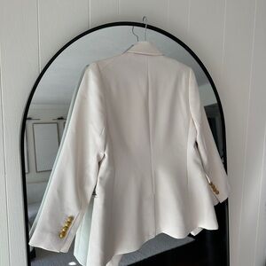 Elegant cream blazer from Express. Features gold buttons and classic lapel. Perfect for formal occasions.