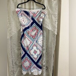 Strapless For Love and Lemons floral dress, size 1X. Pre-worn. As is — small stain on inside (Picture #6), not visible from outside.