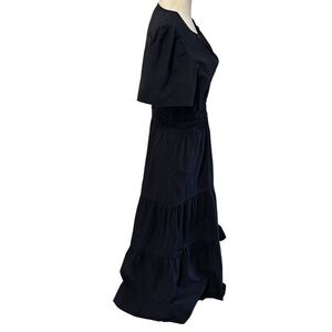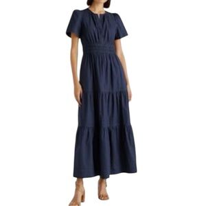 NWT Quince 100% Organic Cotton Poplin Tiered Maxi Dress Navy Blue