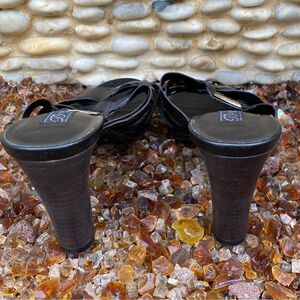 Brighton Vista Black Slide Open Toe Sandals Strappy Heels Leather Size 7.5M EUC!