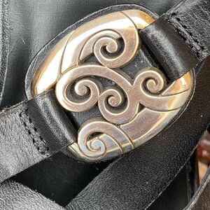 Brighton Vista Black Slide Open Toe Sandals Strappy Heels Leather. Size 7.5M. Features a slip-on design for easy wearing and a sturdy platform for added comfort and support. The upper is made of high-quality leather and is embellished with a silver metal ornament, making it stand out from other plain sandals. Excellent Pre-Owned Condition other than buckles looks a bit tarnished. Hard to tell as it looks like it might be light gold. Not noticeable when wearing. No Box. Ships from a smoke and pet free home.