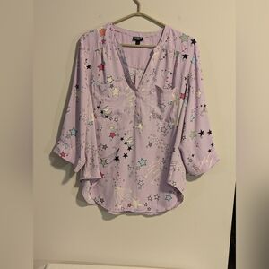 Torrid Harper 3/4 sleeve blouse With Star Graphics. Polyester. Size 1X. Purple.