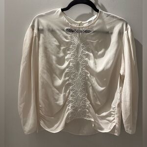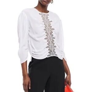Sandro Paris Antonin 100% Silk Crepe de Chine Guipure Lace Blouse | Size 10