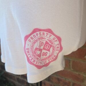 This stylish top from PINK Victoria's Secret showcases a classic snap collar and long sleeves, crafted in a soft, stretchy fabric for a flattering very fitted fit. The white base is enhanced by a subtle pink floral embellishment, adding a touch of femininity to the button-down style. Please see photo #4 for small flaw that may come out. I just have not tried.