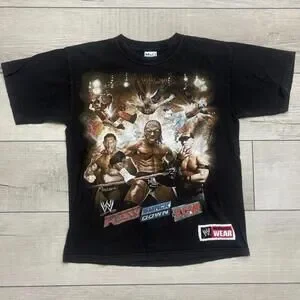 •Features: Explosive front graphic featuring Triple H, John Cena, The Miz, and others; includes RAW, SmackDown, and ECW logos; official WWE Authentic Wear patch; printed on M&O Knits Heavyweight tee