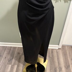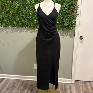 Get whisked away in the Lulus Sweetest Admirer Black Ruched Surplice Maxi Dress! Medium-weight, stretchy crepe knit shapes this figure-flaunting dress with a surplice neckline and lightly ruched bodice with gathered pleats at the side, all supported by skinny straps. A figure-skimming maxi skirt falls into two overlapping panels that shape a sexy side slit. Pair with platform heels and a clutch for a special night out!
