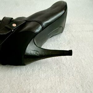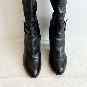 Nine West Black Leather Knee High Heel Boots Size 8.5