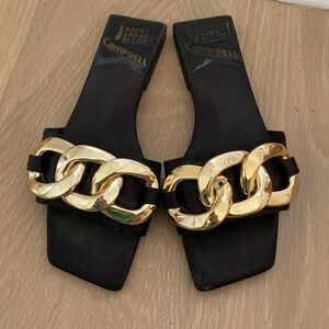 Jeffrey Campbell - Park Chain Slide Sandal in Black Satin sz 5