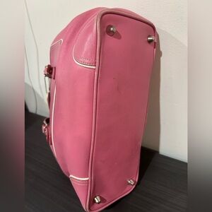 In Good preowned condition with wear on handles , at the opening of bag , and bottom corner .Discoloration