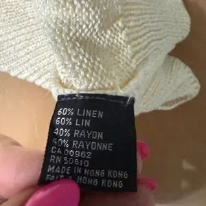 Elevate your wardrobe with this charming vintage Stirling Cooper polka dot sweater. The short-sleeved pullover is perfect for both casual and party occasions, adding a touch of 80s nostalgia to your outfit. Made of a knit blend of rayon and linen, the sweater is comfortable to wear and easy to care for.