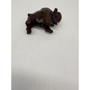 Hand Carved Wooden Bison Buffalo Figurine Rustic Wildlife Wood Sculpture 3 inch