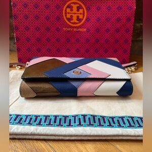 NWOT Tory Burch Multicolor Robinson Pieced Chain Wallet