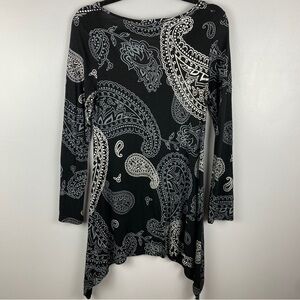 Papillon Paisley Long Sleeve Handkerchief Tunic Top Small Black