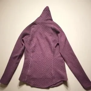Soft quilted fabric with a diamond pattern, funnel neckline with drawcords, and drop-tail hem for flattering coverage. Perfect for cool weather hikes or lounging at home.
