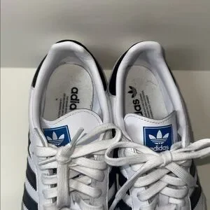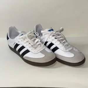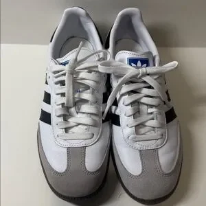 Up for sale is a classic pair of Adidas Samba OGs in the essential White, Black, and Gum colorway. This pair has been worn exactly once and is in immaculate condition, perfect for anyone looking for that signature street-style look without the wear and tear.