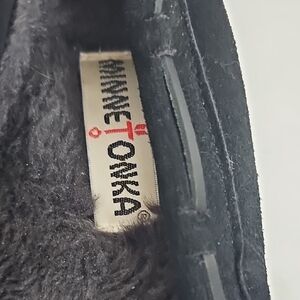 Minnetonka Black Suede Fur Lined Moccasins Rubber Bottom Size 8