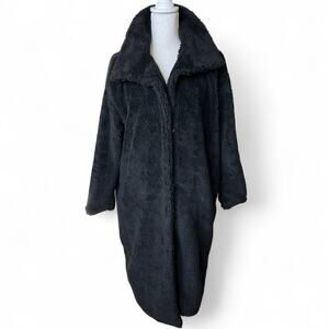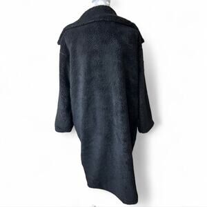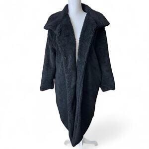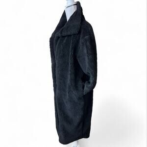 Throw the Oversized black teddy faux fur Trench style jacket, two hoop and clasp closure, side pockets, seton lined interior. oversized fit, the warm and snuggly, with a classic trench cut. Perfect for a chic night out or throw on for your favorite go to winter everyday. Good condition!