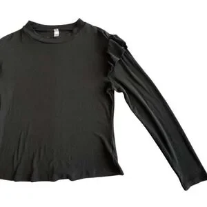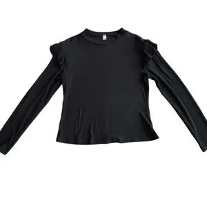 Black Ruffle Sleeve Top | Women's Long Sleeve Blouse | Size XL
