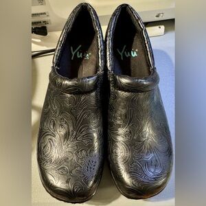 Women's YUU Memory Foam Black Bethanee Embossed Slip On Clogs Shoes Size 6.5 M. Condition is Pre-owned - Excellent. Shipped with USPS Ground Advantage.
