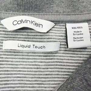 Calvin Klein Liquid Touch Embroidered Chest Logo Gray White Stripe Mens 2XL Polo