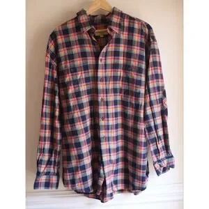 Kenyon Ridge Plaid Flannel Shirt Men L 100 Cotton Button Down Vintage Style