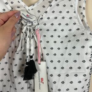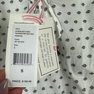 New With Tags Vineyard Vines Fan Border Print Beach Maxi Dress in Jet Black. Lightweight cotton maxi featuring a classic fan border print, tassel tie neckline, and fully lined interior. Designed as a versatile piece that can be worn as a dress or beach cover-up. Perfect for summer, vacation, resortwear, or coastal style.