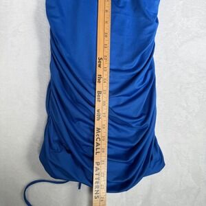 Lucy in the Sky Blue Bodycon Dress Ruched Laced Back Cocktail Party Med