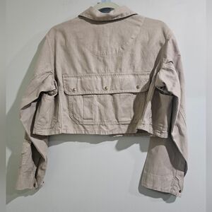 Banana Republic Cropped Utility Jacket Dark Khaki Color Sz Small Cotton & Linen