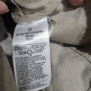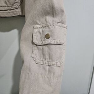 Excellent like new condition. Size small. Cotton/linen blend. Darker khaki tan color.