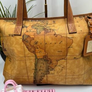 #AlvieroMartini #1AClasse #GeoMap #ItalianLuxury #DesignerTote #VintageStyle #TravelBag #MadeInItaly #MapPrint #QuietLuxury