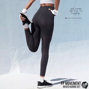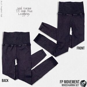 FP MOVEMENT GREY GREAT KARMA CROP TANK + BLACK GOOD KARMA HIGH-RISE LEGGINGS M/L