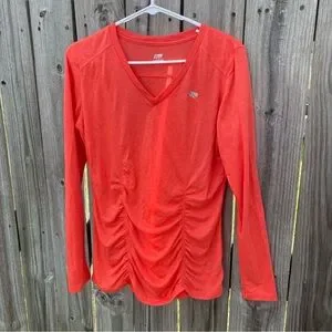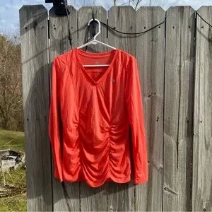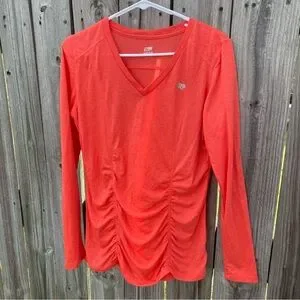 Marika Coral Ruched V Neck Long Sleeve Athletic Top Women's Size L