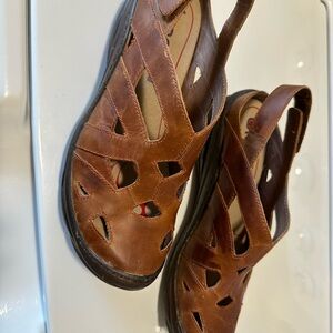 Bionica Tan Leather Cut-Out Sandals Velcro Closure 8.5 M