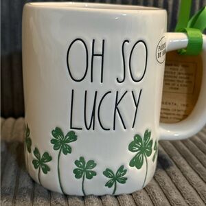 Rae Dunn White and Green 'Oh So Lucky' Mug