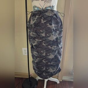 Vintage Almost Famous camouflage/camo midi skirt with 4 pockets (including side pockets) and drawstrings to adjust fit around waist and length of skirt. Very light fabric.