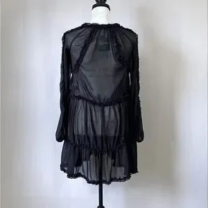 Made of flowy, sheer chiffon, this minidress is detailed with a ruffle trim and tiered skirt.