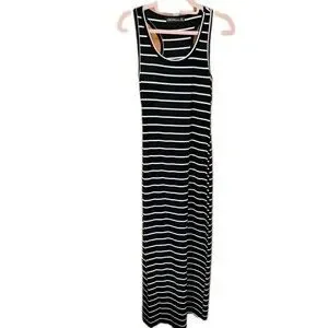 Zanzea Striped Maxi Dress Size 4 Black White Sleeveless Stretch Summer