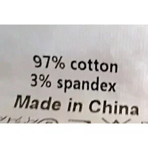 97% cotton, 3% spandex (soft, breathable, and stretchy)
