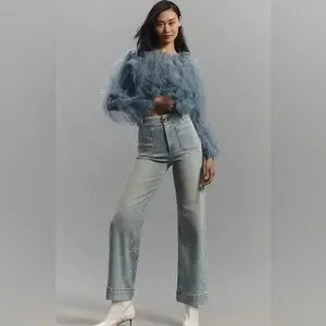 NWOT Maeve The Colette Full Length Rhinestone Wide Leg Jeans Size 32