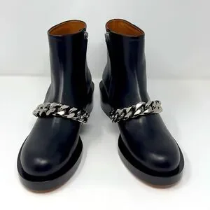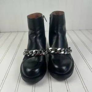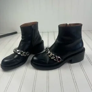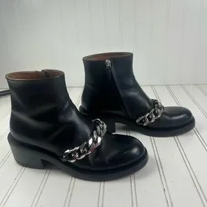 Givenchy Laura Black Chain Trimmed Leather Ankle Boots Womenโs Size 7-7.5