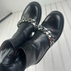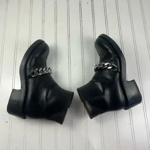 Givenchy Laura Black Leather Chain-Trimmed Leather Ankle Boots Womenโs Size 7