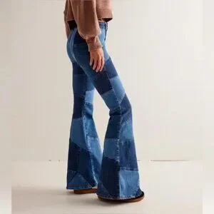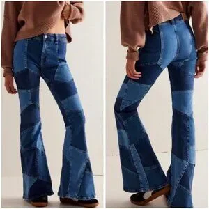 Free People We The Free No Boundaries Patchwork Flare Bell Bottom Jeans; excellent condition