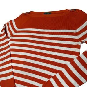 Lauren Ralph Nautical Striped Knitwear Boat Neck Long Sleeve Sweater Cotton