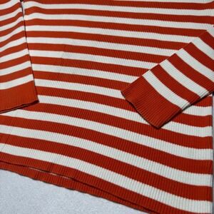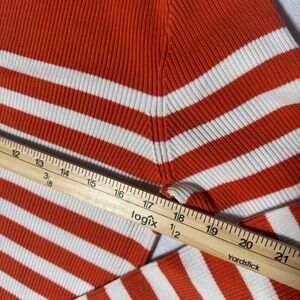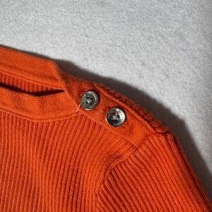 Classic nautical-inspired sweater, featuring a vibrant orange and white striped design. Crafted with attention to detail, it showcases a flattering boat neck and stylish button accents at the shoulders. Ideal for casual outings, weekend getaways, or adding a pop of color to your everyday wardrobe.