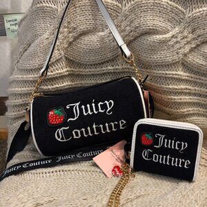 Juicy Couture "Sweet n Juicy" Black Barrel Bag & Matching Wallet Set NWT