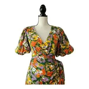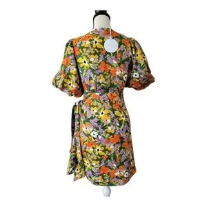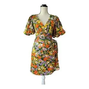 Petal & Pup Flourish Puff Sleeve Mini Wrap Dress Size XS New