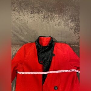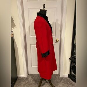 Hannah Vintage Red Pure Virgin Wool Overcoat Coat Black Trim Fits Medium & Large